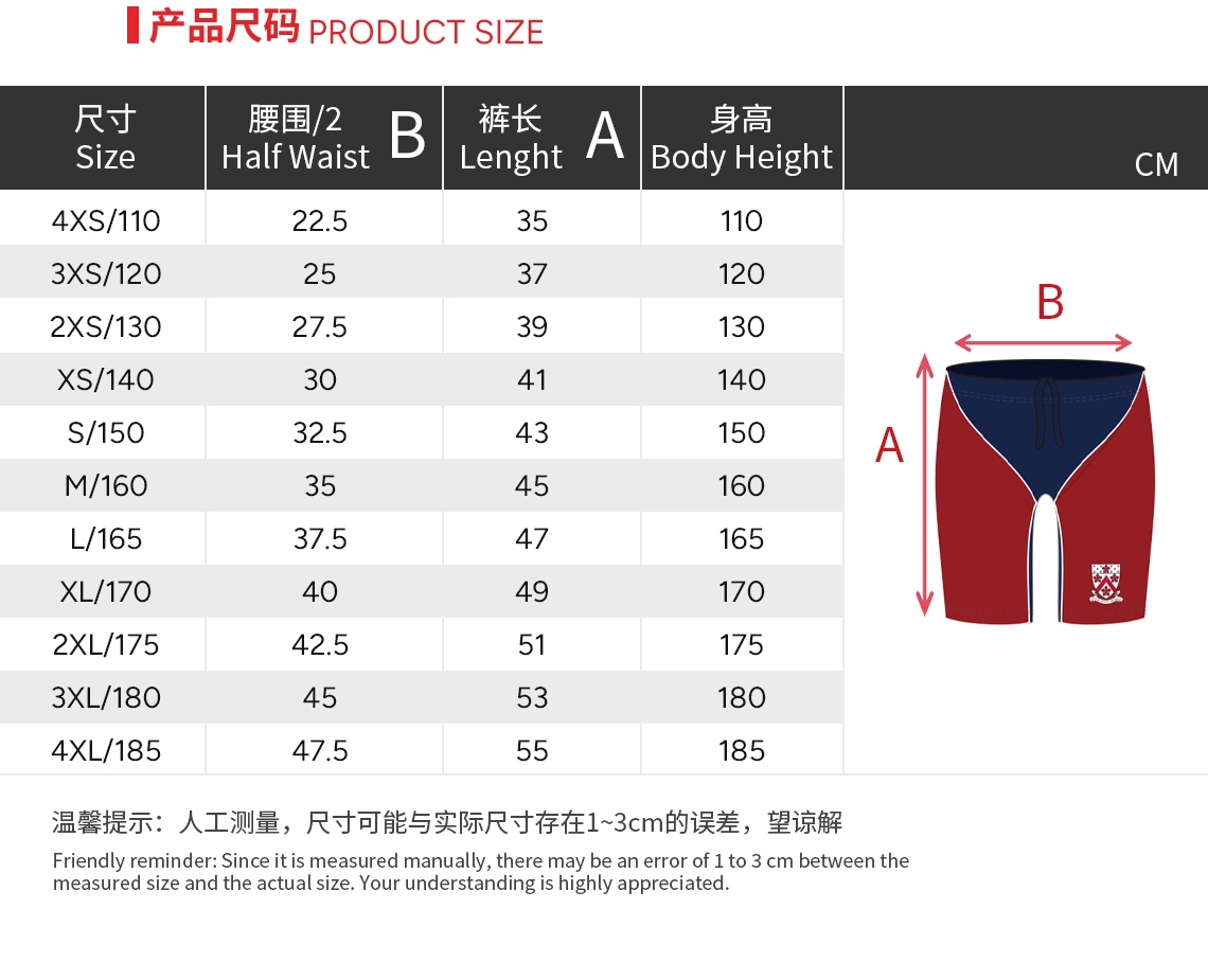 | Size | 4XS/110 or 3XS/120 or 2XS/130 or XS/140 or S/150 or M/160 or L/165 or XL/170 or 2XL/175 or 3XL/180 or 4XL/185 |