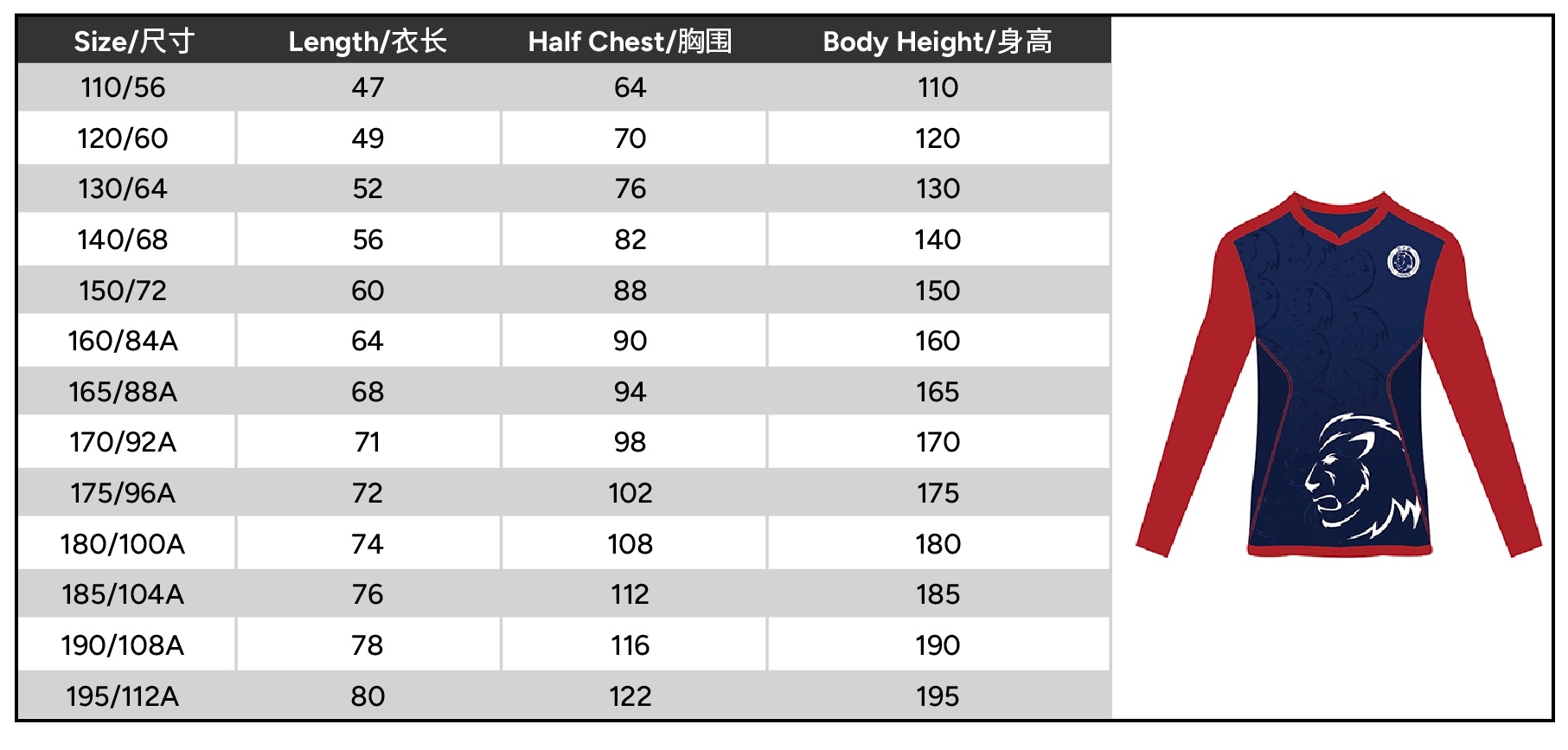 | Size | 110 or 120 or 130 or 140 or 150 or 160 or 165 or 170 or 175 or 180 or 185 or 190 or 195 |