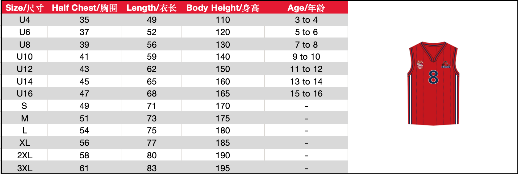 | Size | KS(U4) or KM(U6) or KL(U8) or JS(U10) or JM(U12) or JL(U14) or XS(U16) or S or M or L or XL or 2XL or 3XL |