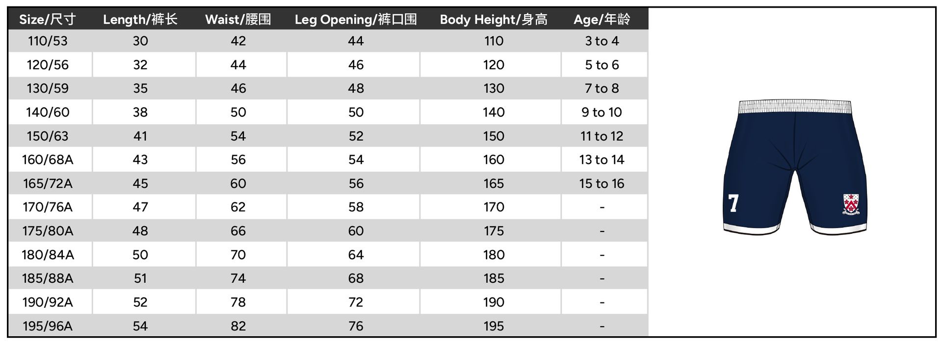 | Size | 110 or 120 or 130 or 140 or 150 or 160 or 165 or 170 or 175 or 180 or 185 or 190 or 195 |